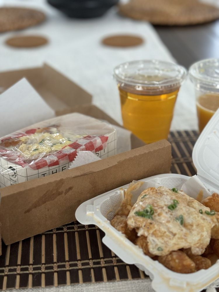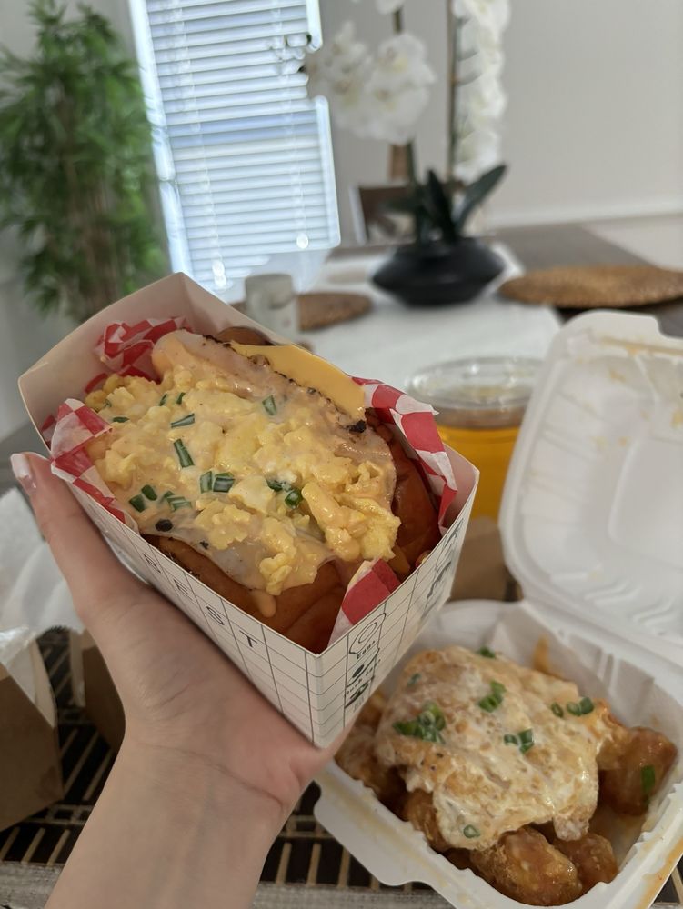 Tater Tots Topped with Scrambled Eggs, Fresh Chives, Drizzled with japanese Mayo & Spicy Aioli.